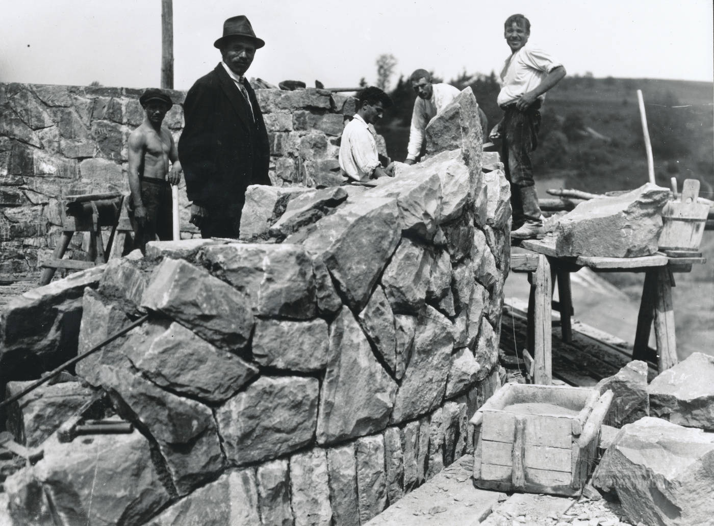 Muž v klobouku asi p. Hruboš (po návratu z Ameriky)